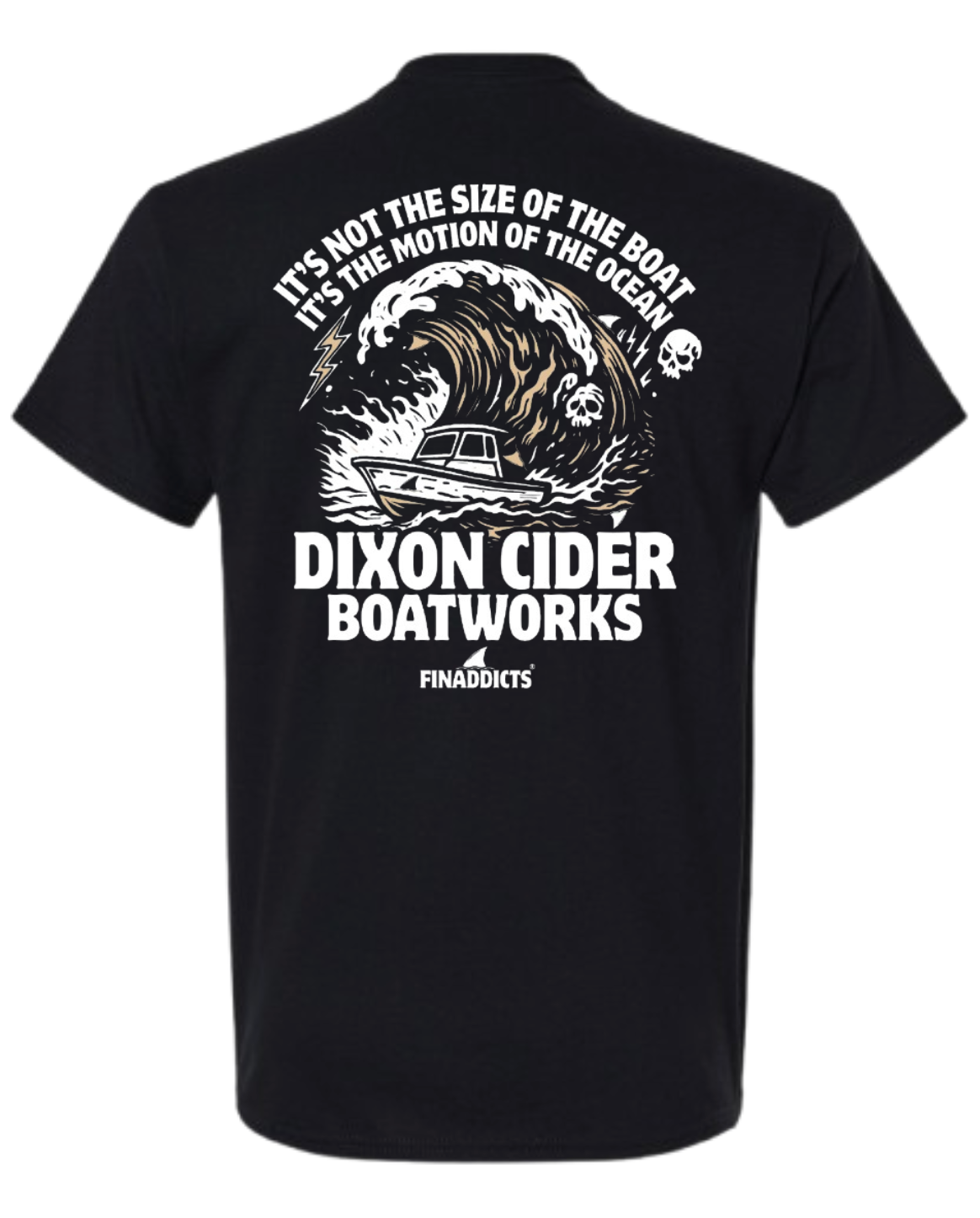 The Dixon Cider Boatworks Tee is for anyone who’s ever captained a “modest” vessel with questionable confidence and no fear. Featuring a little boat about to get taken into a gnarly wave, this shirt proudly reminds the world that it’s not about how big it is, it’s about how you use it.